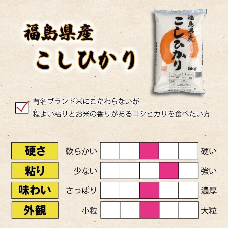 こしひかりは、全国各地でつくられていますが、寒暖の差が大きい福島の気候条件のもとでつくられるこしひかりは、バツグンの美味しさを誇ります。